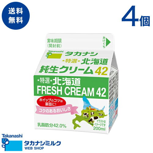送料無料 タカナシ 特選北海道純生クリーム42 200ml 4個 | タカナシ乳業 タカナシミルク 高梨乳業 タカナシ牛乳 生クリームメーカー 生クリーム クリーム ケーキ ホイップクリーム ホイップ 生クリームホイップ業務用 生クリーム200ml 42%