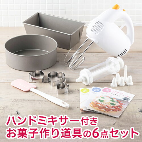 ■セット内容 ・ハンドミキサー ・シリコンへラ ・ハートのクッキー型 3サイズ ・デコレーションケーキ型18cm ・パウンドケーキ型20cm ・生クリーム絞り(口金6種付き) ※画像は8種ですが商品リニューアルに伴い、口金6種になります。