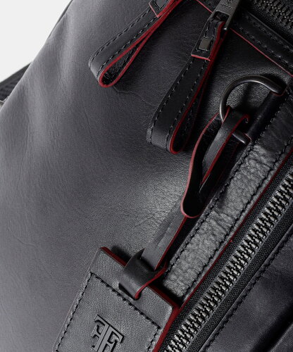マットなブラックで統一された金具やファスナーが、モダンでクールな印象を生み出します。